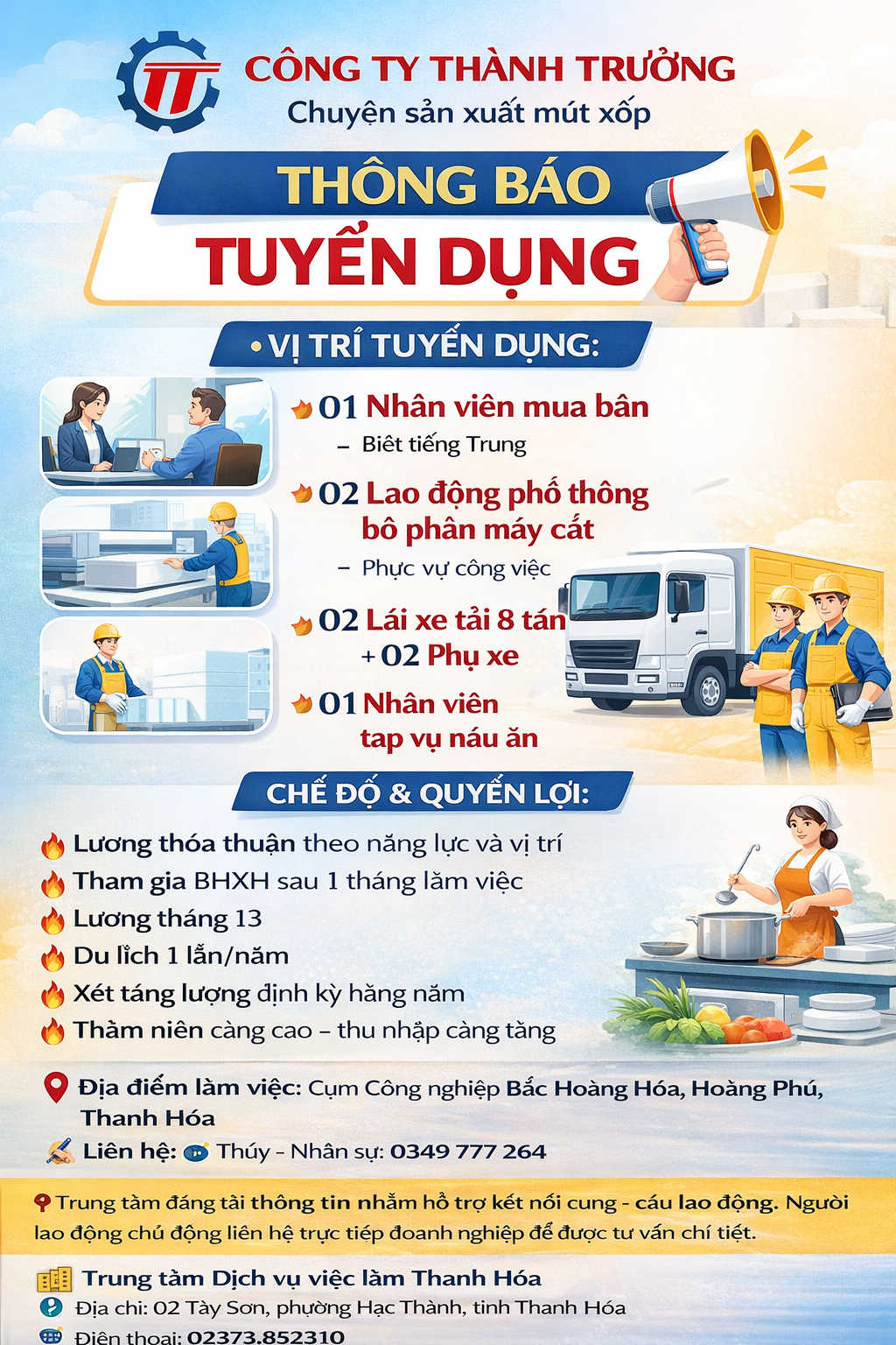 📢 CÔNG TY THÀNH TRƯỞNG THÔNG BÁO TUYỂN DỤNG