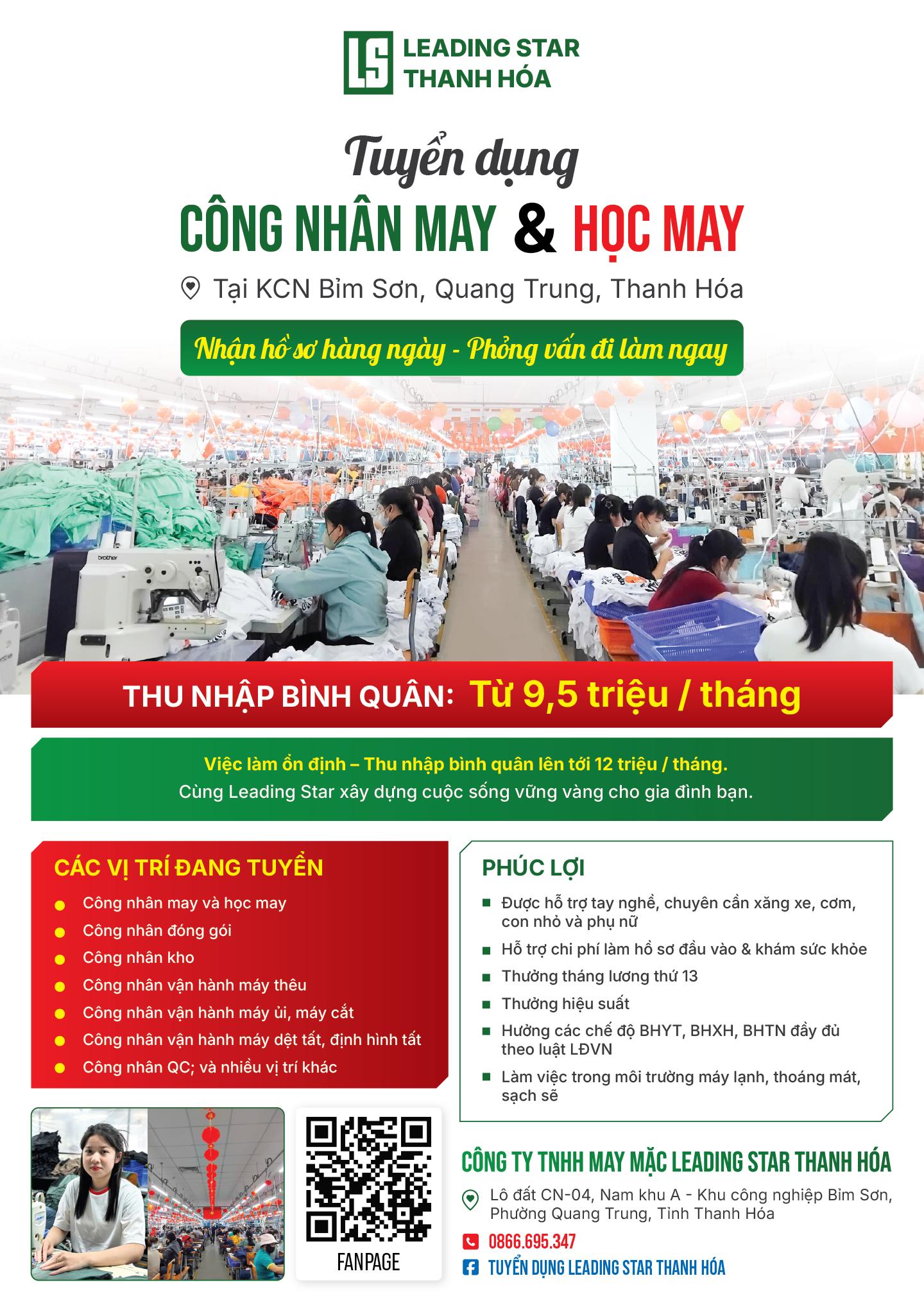 Công ty TNHH May mặc Leading Star Thanh Hóa hoạt động từ tháng 01/2023 với quy mô khoảng 6.000 lao động.