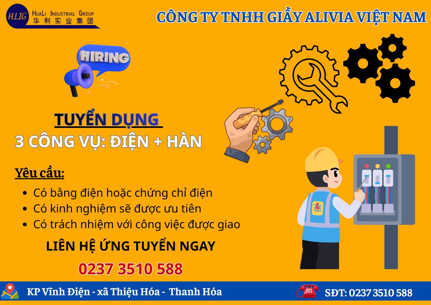 📢 CÔNG TY TNHH GIẦY ALIVIA VIỆT NAM THÔNG BÁO TUYỂN DỤNG NHÂN VIÊN CÔNG VỤ – THANH HÓA